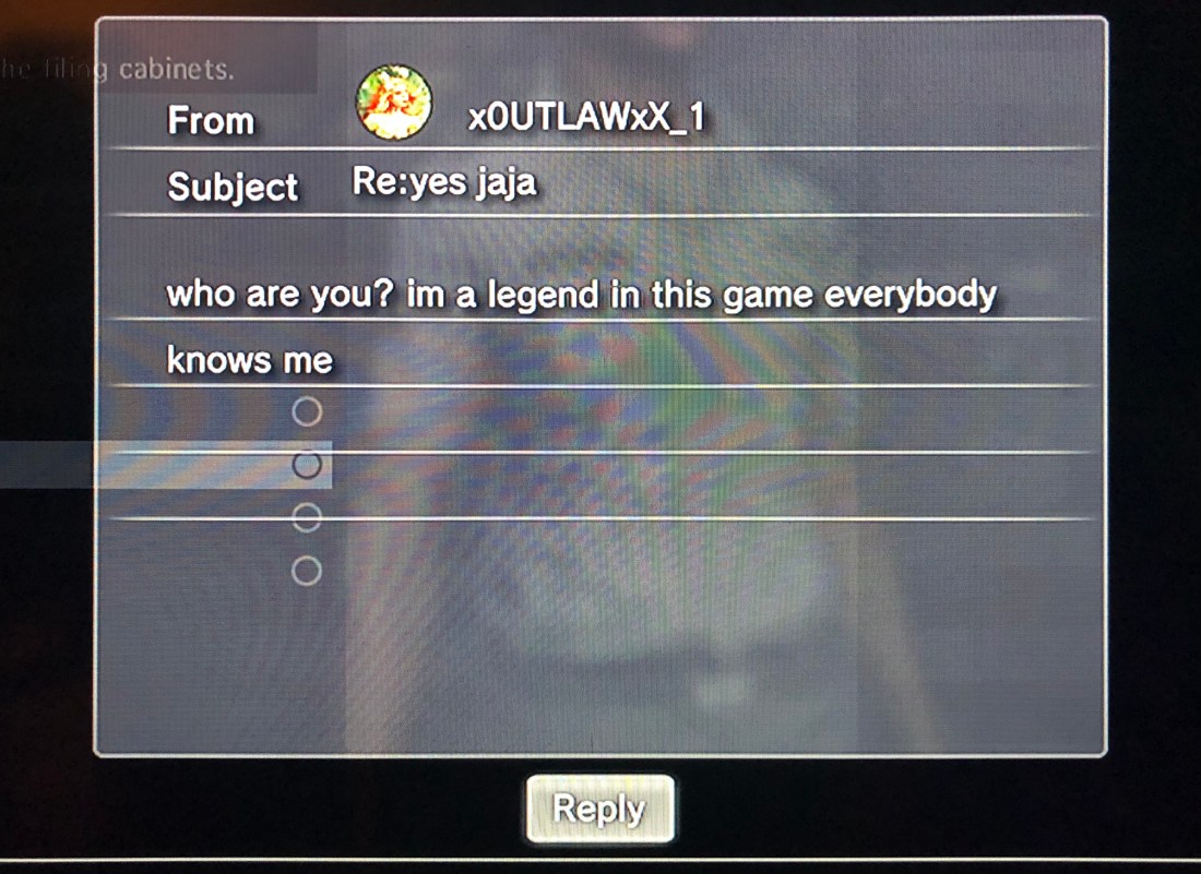 Below is a message from Real-UCRY-Leader AkA x0UTLAWxX_1 AKA xXOUTLAWXx_1 saying he’s a Legend in Games implying to Max Payne 3 π what a sick puppy, what we have here in my opinion is a very mentally I’ll individual with multiple Character Disorders and most likely multiple personalities! Mentally ill people such as Real-UCRY-Leader who pretends to be other people and is obsessed with other individuals and their success in life or a Games and tries to literally pretend to be a others or take Credit for other people’s accomplishments is Extremely deranged in my opinion! Words like delusional Neurotic Imbecile and Schizophrenic come to mind!π The only Clear cure for Real-UCRY-Leader is a full Lobotomy!
